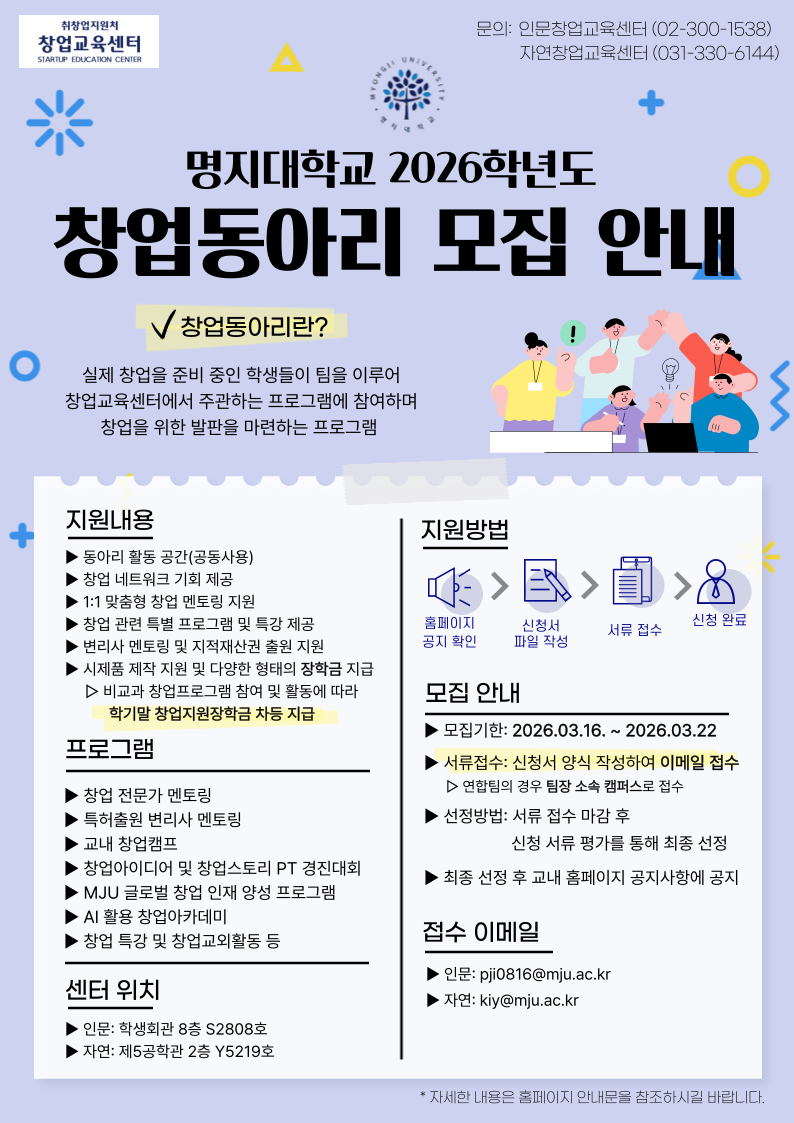 · 인문창업교육센터 : pji0816@mju.ac.kr
