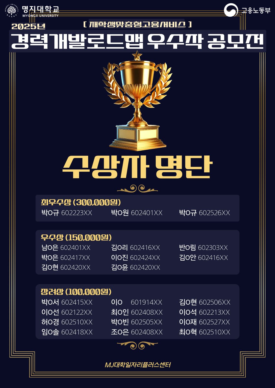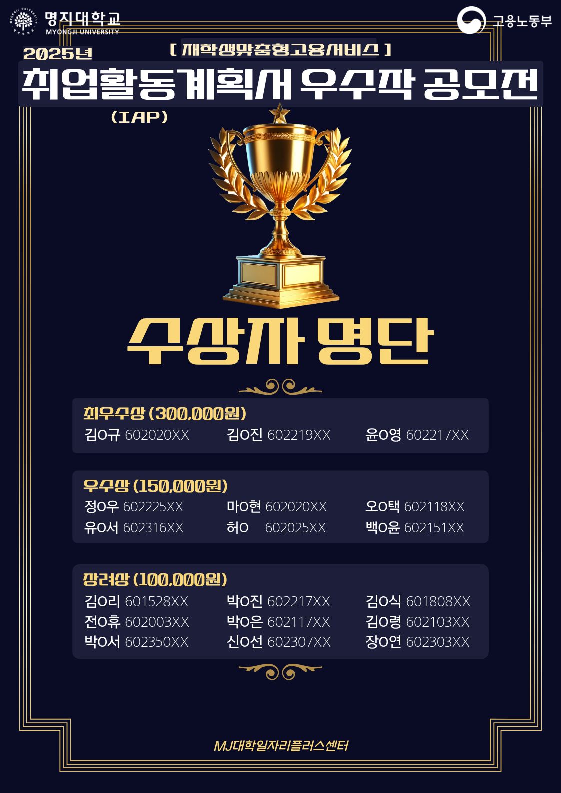 [재맞고] 2025학년도 경력개발로드맵/취업활동계획서(IAP) 우수작 공모전 수상자 안내